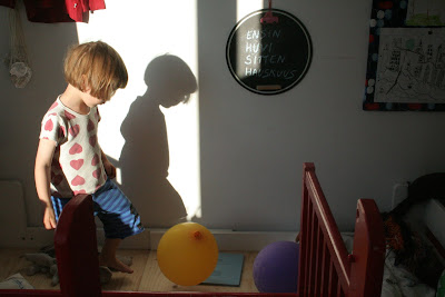 Illalla myöskin löydän kuopukseni huoneestaan leikkimästä ilmapalloilla. Otan hänestä kymmeniä kuvia ja hän näyttää ihanalta. Välillä hän hassuttelee ja sipsuttelee, välillä hurjistelee ja sanoo sotivansa niillä palloilla ilmapallosotia. Sanon, että olisi paljon parempi, jos maailmassa käytäisiinkin sellaisia sotia vaan. Tiedän, että juuri nekin hetket jäävät syvälle mieleeni. Jotkin ohikiitävät jäävät, muita selvemmin. Hetkeä aiemmin säälin tuota meidän nuorimmaisinta, sillä esikoinen sai mennä pihalle pelaamaan sählyä naapurin poikien kanssa ja kuopus vain katsoi ikkunasta. Mutta kun ruoka oli valmis ja ajattelin mennä kysymään josko mekin menisimme hetkeksi pihalle vaikka, huomasinkin, että näin se menikin ehkä paremmin. Kuopus tietää, että hän on vielä pienempi, ja haluan suojella häntä enemmän siksi. Ja tulee aika, jolloin hänkin viilettää ovesta leikkeihin, ja silloin hän on siihen kaikkeen valmiimpi.